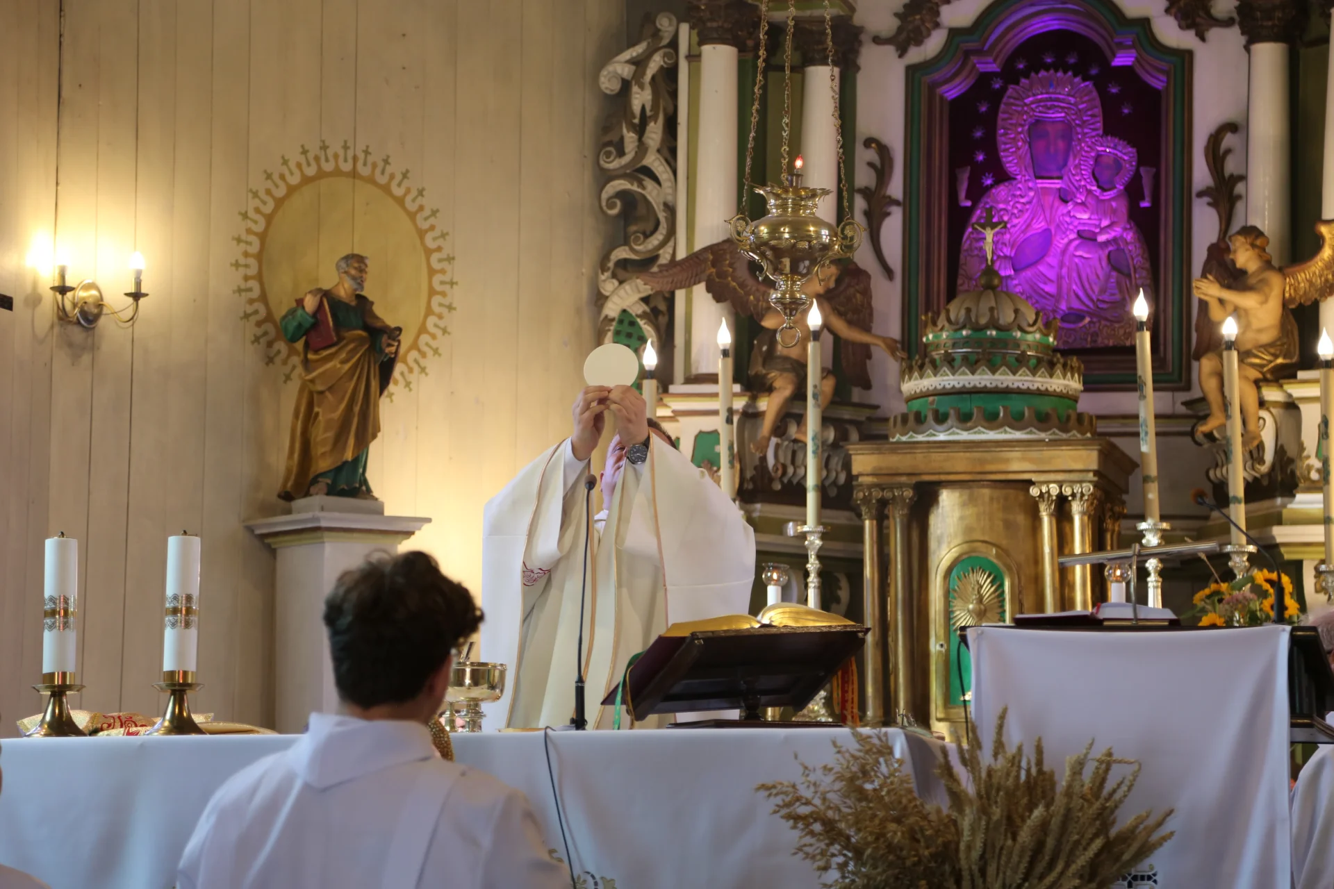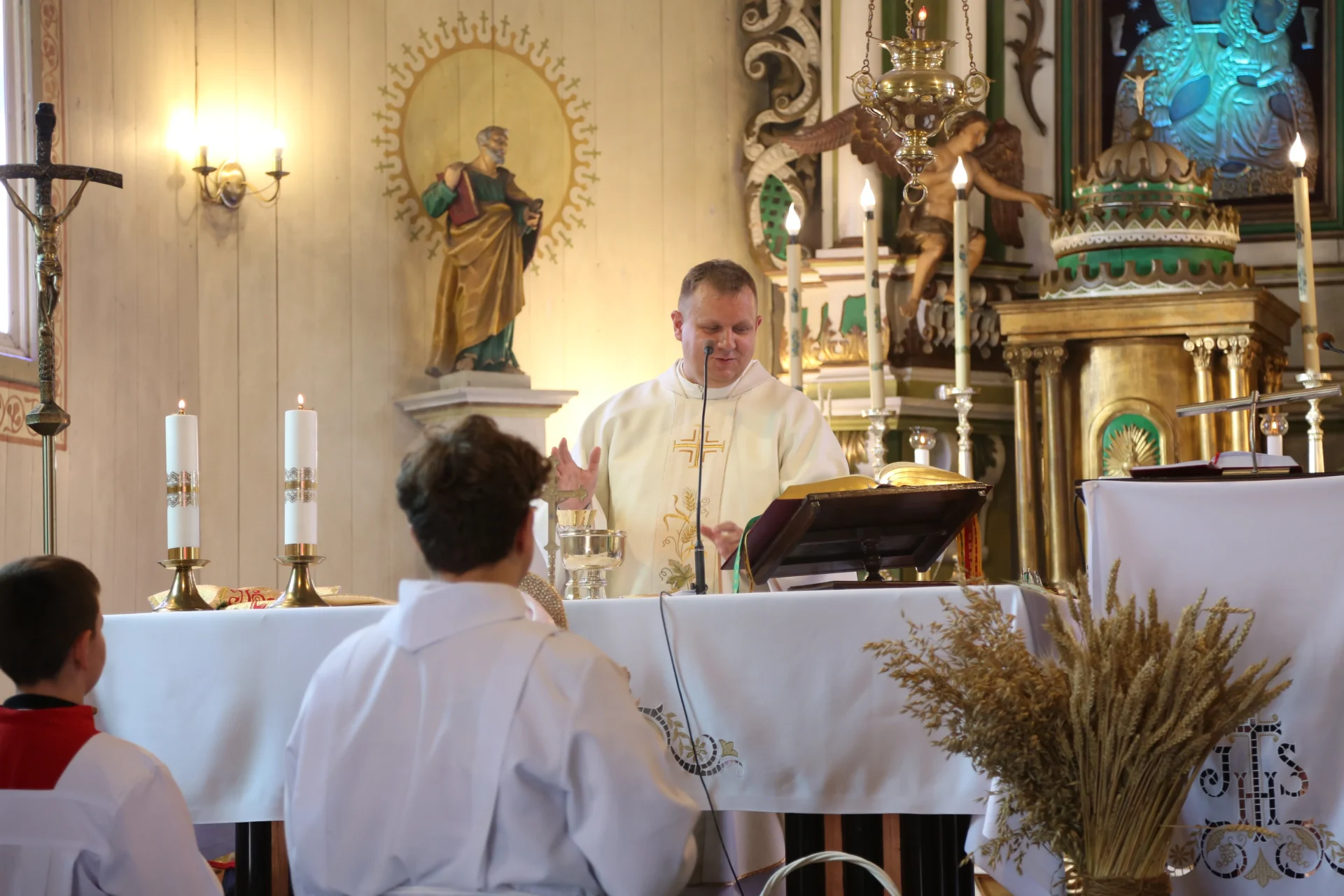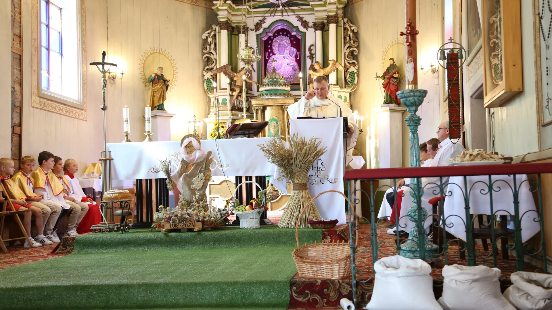 Podczas corocznej Mszy Świętej dziękowaliśmy Panu Bogu za plony ziemi, które mogliśmy zebrać z naszych pól.