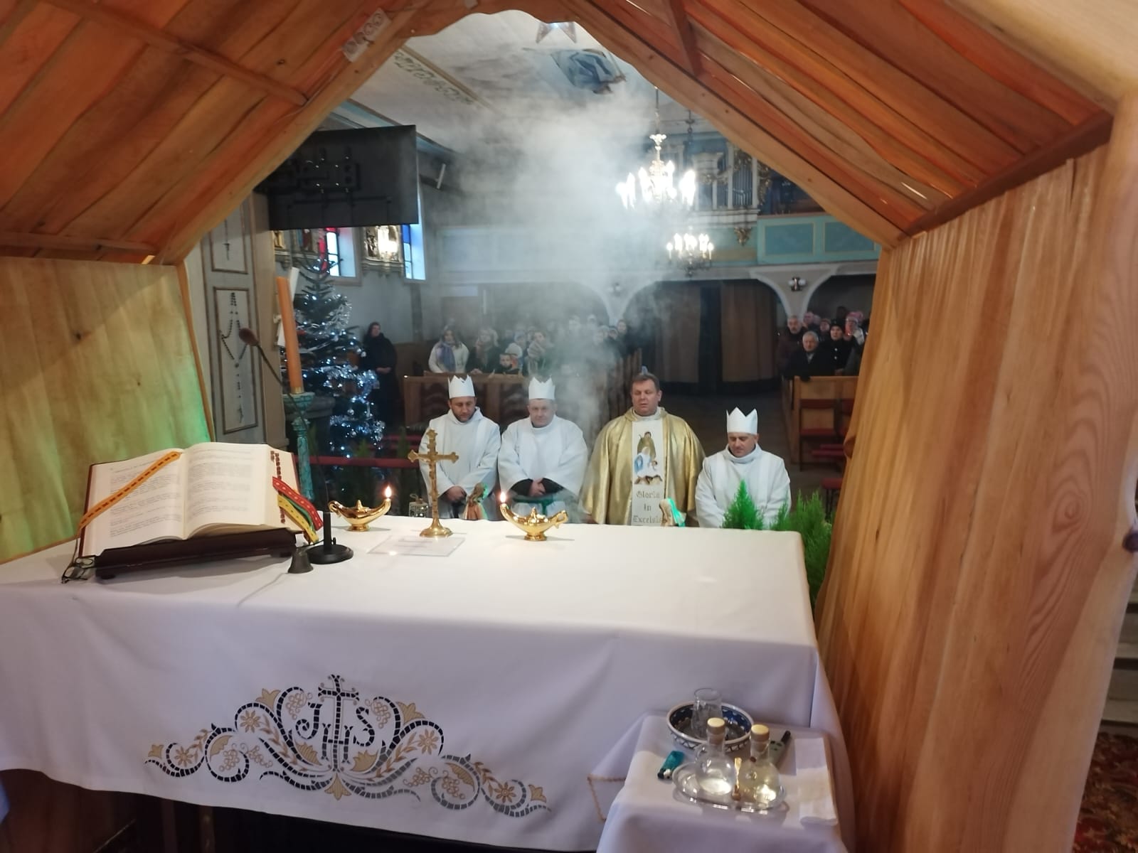 To piękne ujęcie ukazuje przygotowanie do Mszy Świętej oraz wspólnotowy charakter uroczystości.